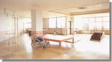 このリハビリテーションスペースでは、専属のPT(理学療法士)やスタッフが残された機能の維持・回復に向け、リハビリやレクリエーション、ゲームなどを通じて家庭復帰のお手伝いをいたします。